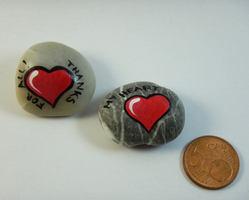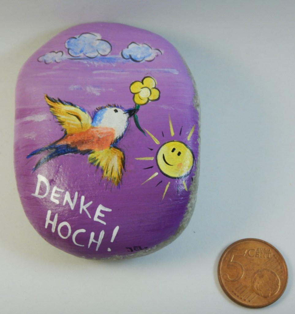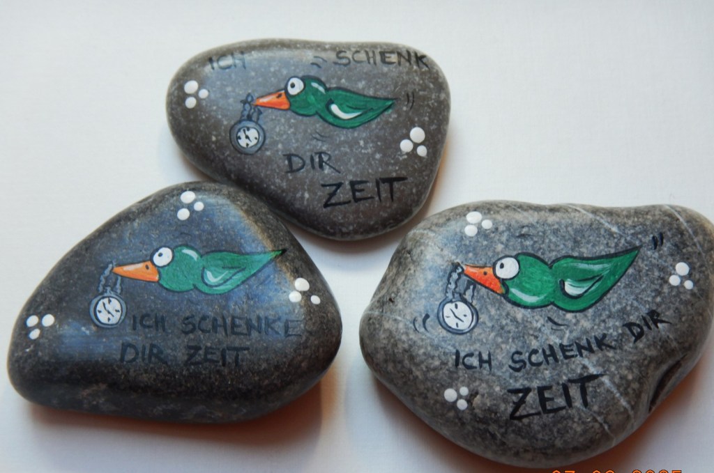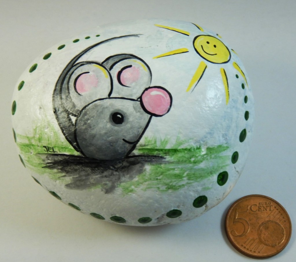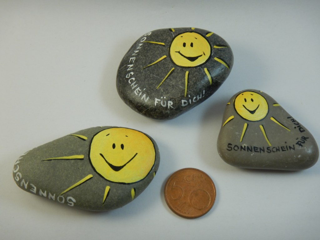 Manchmal finden sich Steine oder Gegenstände, die einen anlachen um verzaubert zu werden. Die bemalten Gegenstände sind entweder aus Feinbeton oder Gips gegossen oder stammen aus der Natur.
